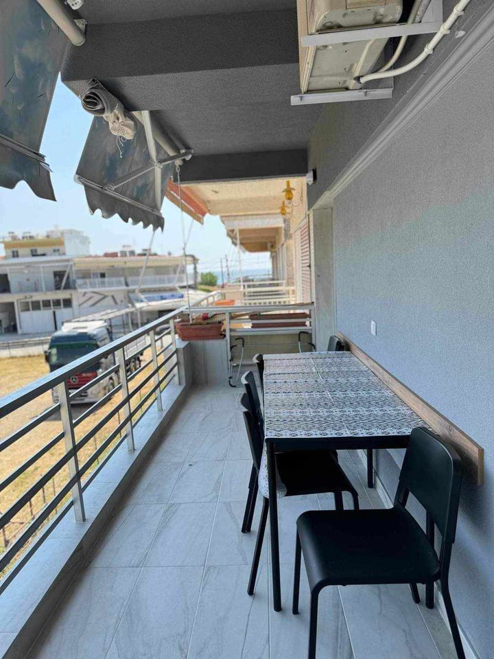 Апартман Лукас во Неа Плагиа.За 4-6 лица. 80 метри од плажа со страничен поглед на морето. Има соба со еден брачен кревет и два единечни кревети на спрат. Дневна и трпезарија заедно. Во дневната соба има софа. Опремена кујна за приготвување и послужување храна и пица. Клима и Wi-Fi се вклучени во цената. Станот се наоѓа на втор кат.