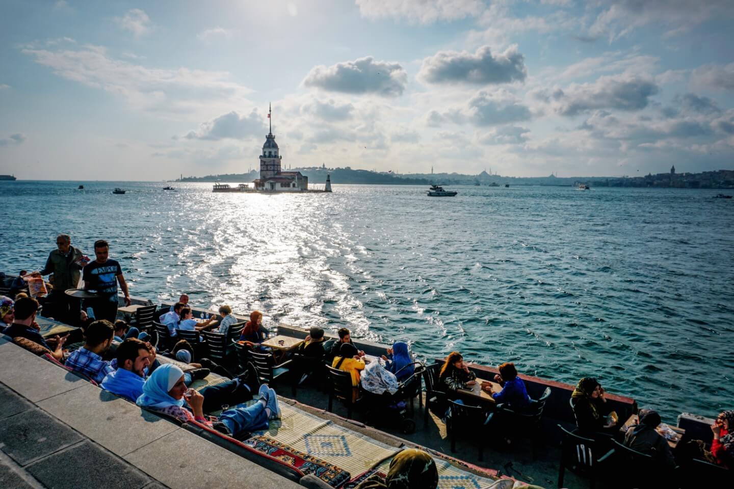 По крстарењето,групата се упатува кон Женската Кула истотака позната како Кулата на Леандрос, која потекнува од средновековниот византиски период. Женската кула е стационирана на мало островче кое се наоѓа на јужниот влез на Босфорскиот теснец од Ускудар. Внатрешноста на кулата е претворена во место за кафе и ресторан, со поглед на поранешната римска, византиска и османлиска престолнина. Ќе имате можност да го видите брегот на Истанбул од еден различен аспект и да ги слушнете митовите и легендите за изградбата и локацијата на кулата.