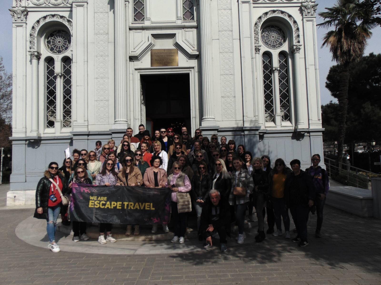 Групата се упатува кон хотелот заедно со својот багаж, каде истиот се остава во просторија предодредена за чување на багаж. Туристичкиот придружник на Ескејп Травел е задолжен за комуникација со вработениот на рецепцијата во хотелот каде според список на уплати во канцелариите на агенцијата се делат клучевите од хотелските соби. Chech in во хотелот е после 14:00 час. По самото пристигнување (околу 10ч.)патниците се упатуваат на пешачка тура до Капали Чаршија, Сината Џамијиа и Света (Аја) Софија каде заедно со водичот ќе бидат одведени до влезот, а враќањето кон хотелот е индивидуално бидејќи се наоѓаат на 20 минути пеш од хотелите а секој би сакал да има слободно време и приватност при пазарувањето и разглед во чаршијата и околината.