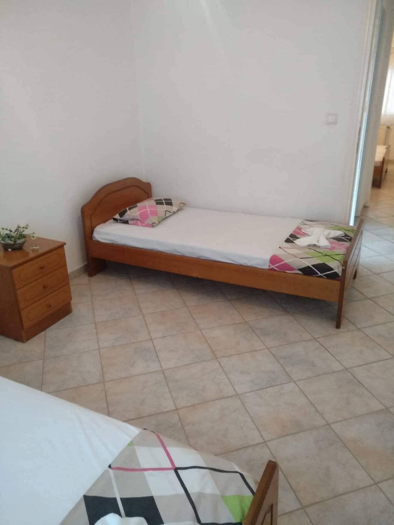 Апартман Деспина-Море 4 во Флогита. За 5 – 6 лица (4 возрасни и 2 деца), на приземје со прекрасна тераса. Има голем двор со скара од тули. Две спални соби и кревет на извлекување во дневната соба. Опремена кујна за приготвување и послужување храна и пица. 80 метри од плажа и 200 метри од центар (во близина на паркинг за агенциски автобуси). Клима и Wi-Fi се вклучени во цената.