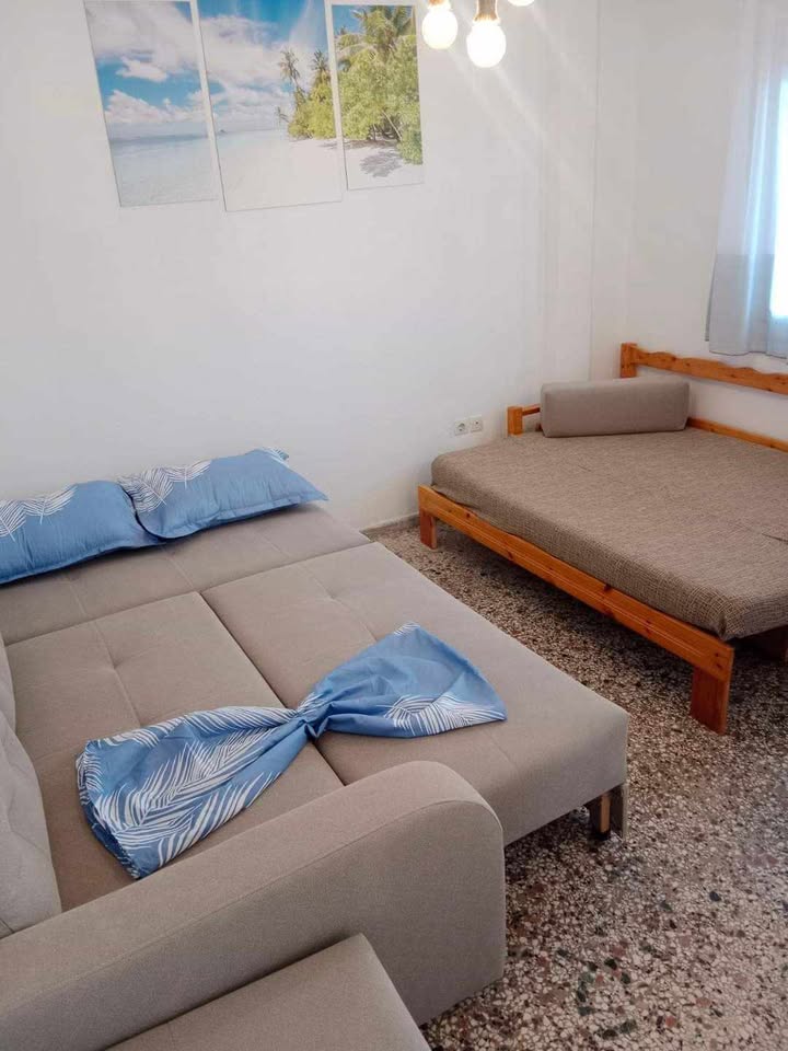 Апартман бр. 3 за 4-5 лица . Се наоѓа на 200 метри од плажа. Се состои од спална соба, кујна со трпезарија, бања и тераса. Во собата има брачен кревет. Во трпезаријата еден кревет на извлекување и една фотелја на преклопување. Опремена кујна за приготвување и послужување храна и пица. Се наоѓа на прв кат, првиот стан лево од скалите. Клима и Wi-Fi се вклучени во цената.