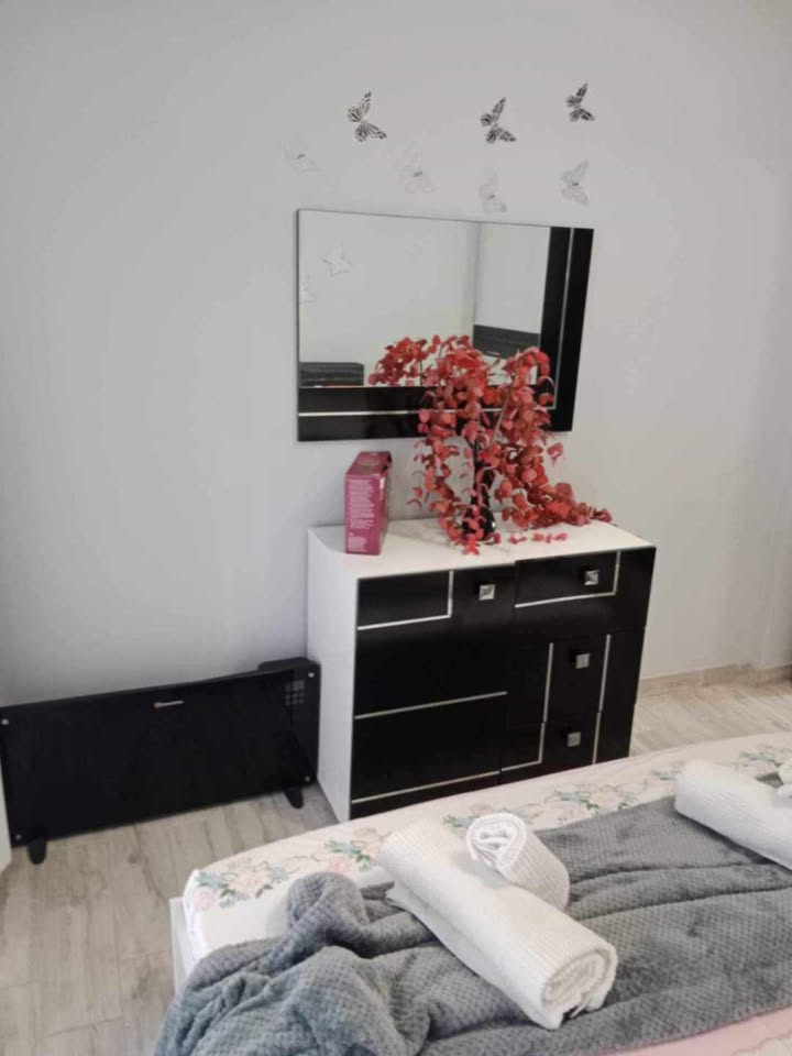 Апартман бр.1 во Неа Плагија. За 4 лица. 80 метри од плажата. Имате еден брачен кревет во едната соба, плус 2 единечни кревети во другата соба. Кујна опремена за подготовка и сервирање храна и пијалоци. Клима уредот и Wifi се вклучени во цената. Апартманот се наоѓа на првиот кат и има 2 тераси. Една напред и една позади.Апартман бр.2 е наменет за 4-5 лица на 80 метри од плажа. Има еден брачен кревет во едната соба, плус една софа кревет во другата соба. Можност за еден дополнителен кревет. Опремена кујна за приготвување и послужување храна и пица. Клима и Wi-Fi се вклучени во цената. Станот се наоѓа на прв кат и има голема тераса напред и мала тераса назад.
