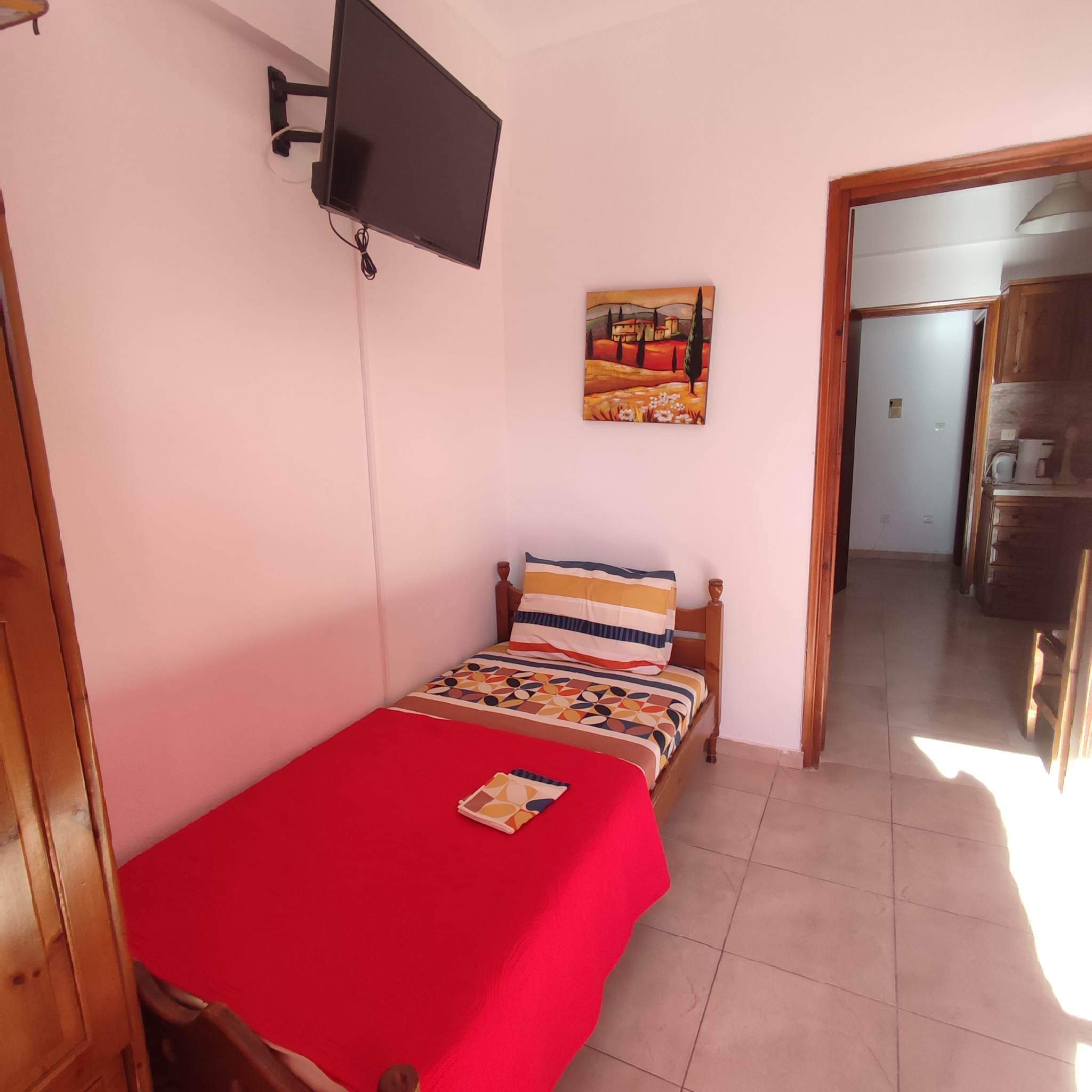Вила Тасула-Апартман бр.4 е за две лица. Се наоѓа на прв ред на 30м од плажа.Има два единечни кревети.