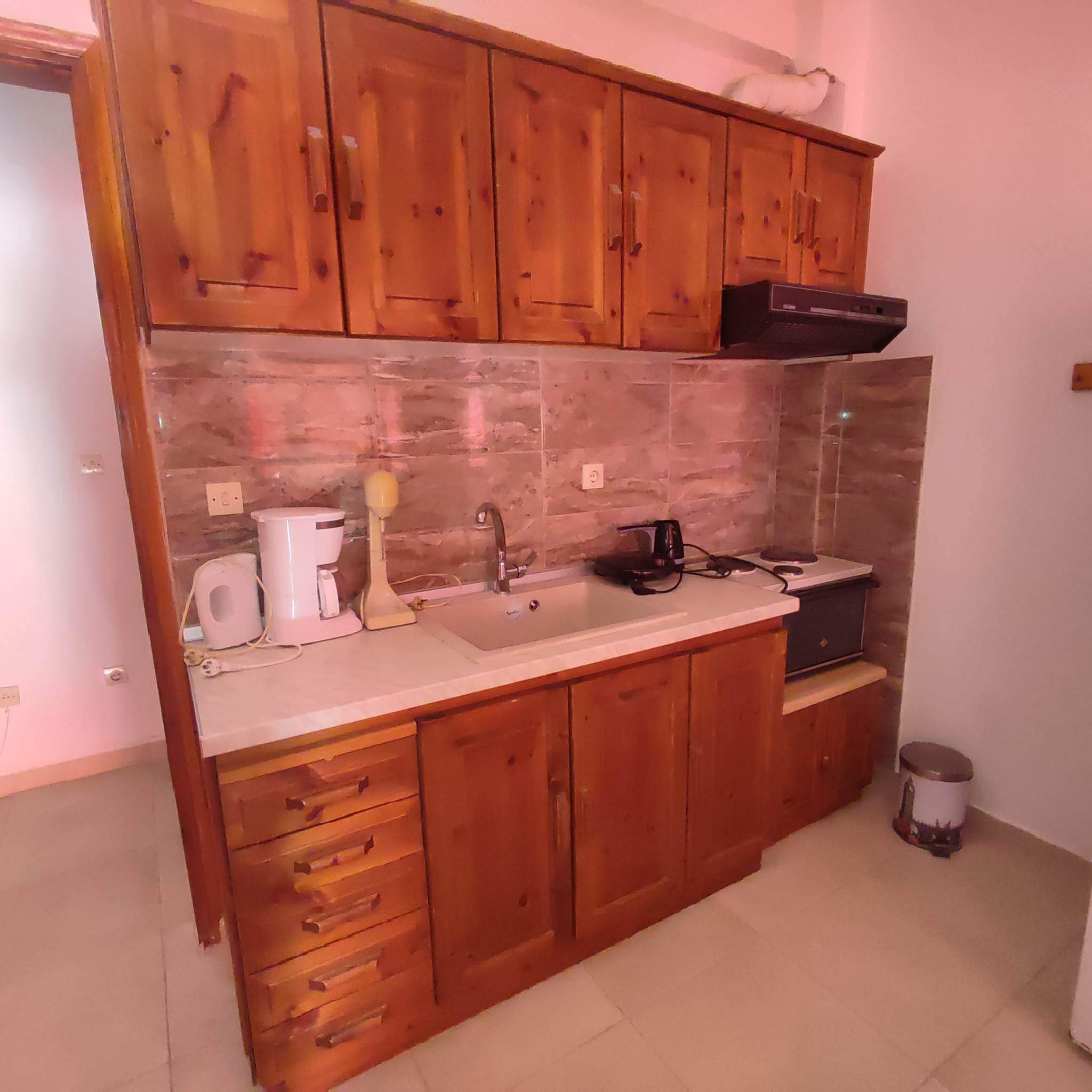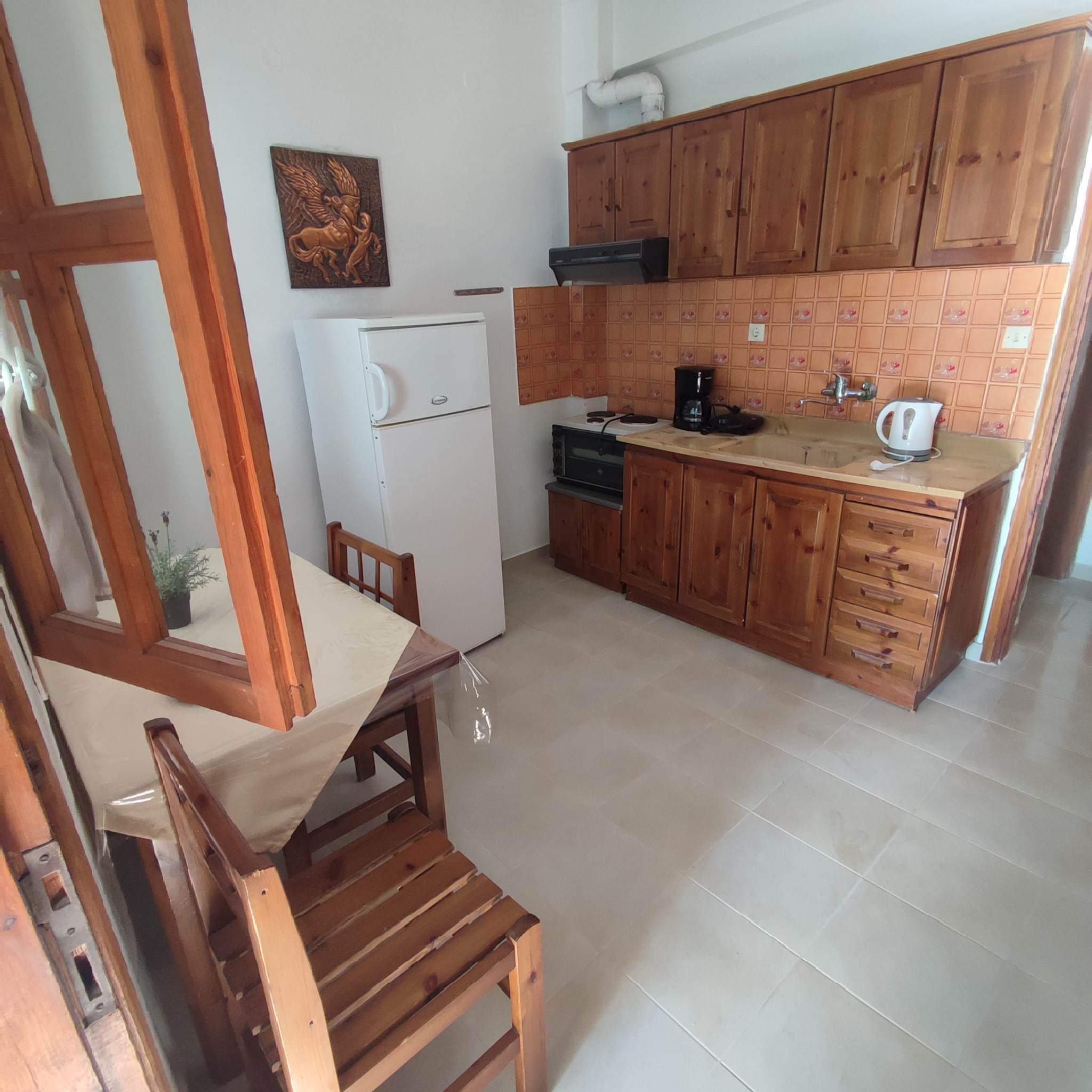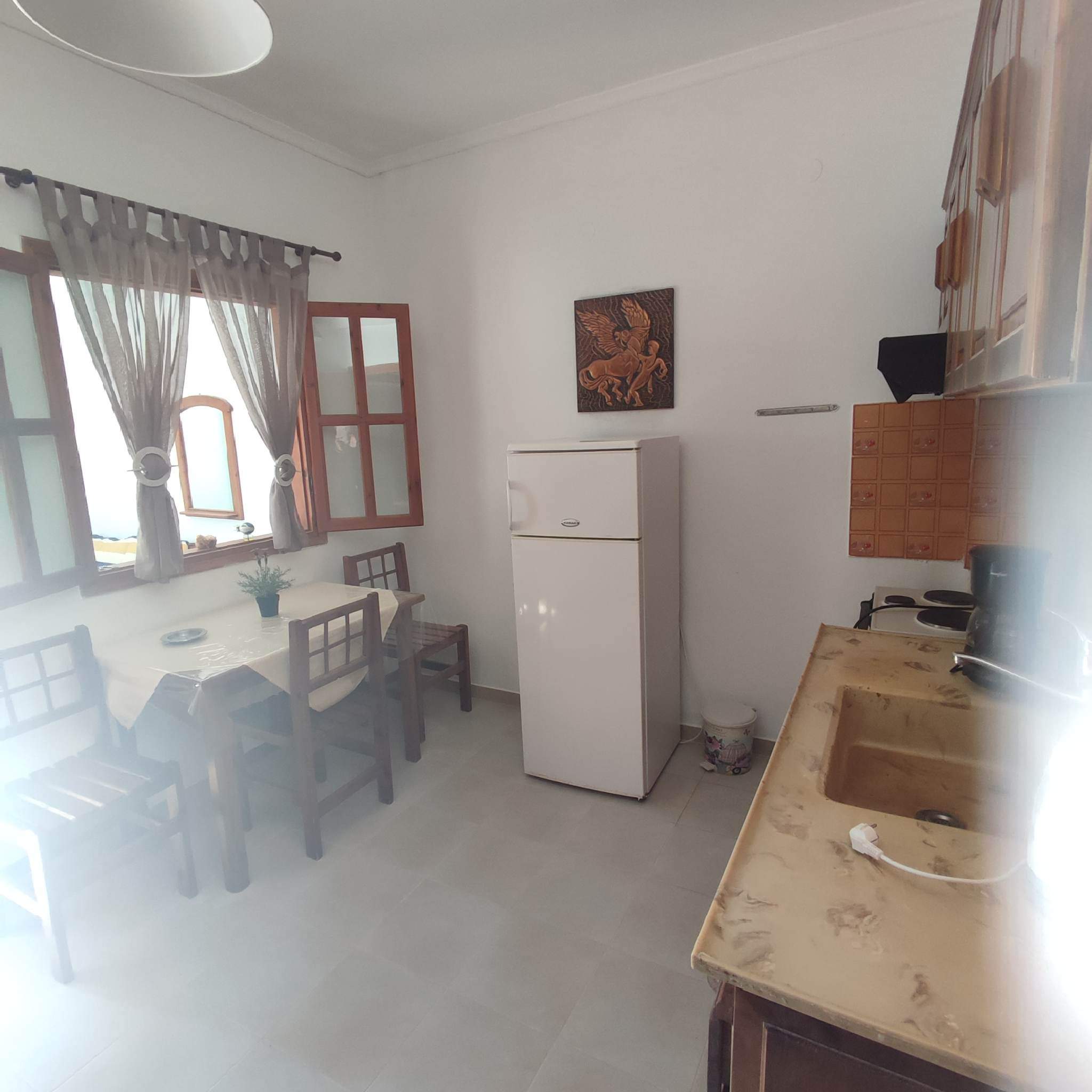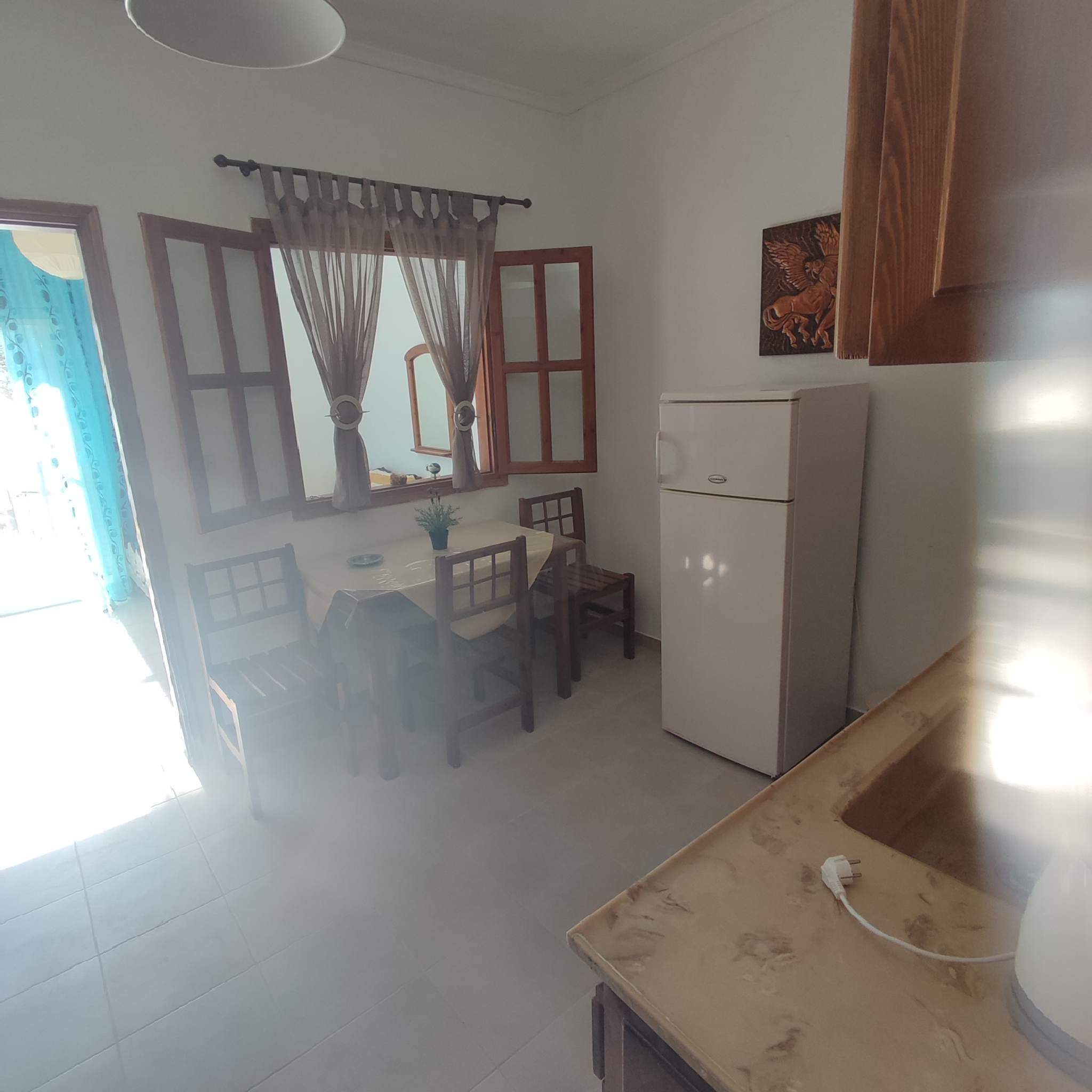 Кујната е опремена со основен прибор за подготовка на лесна храна.Климата и WIFI се вклучени во цена.Апартманот се наоѓа на високо приземје.